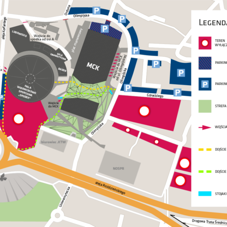 W związku ze zmianą organizacji ruchu w okolicy MCK prosimy o zapoznanie się z mapą terenu! Część parkingów została zamknięta.